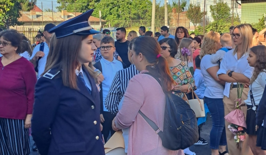 Şi poliţiştii de la prevenire au fost prezenți în prima zi de școală alături de elevi și părinți, care, cu emoție, au primit primele sfaturi de început de an școlar ce privesc siguranța celor mici.