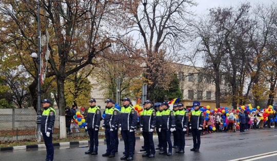 În Piața Tricolorului a defilat un pluton format din 15 agenți de poliție, conduși de către un ofițer de poliție.