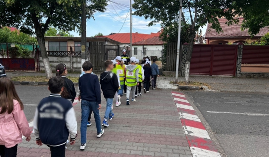 Alături de patrulele școlare din cadrul Școlii Gimnaziale nr.7 din municipiul Giurgiu s-a subliniat încă o dată importanța transpunerii în practică, în condiții reale de trafic, cunoştinţele privind circulaţia pe drumurile publice, însuşite în timpul activităţilor educative cu tematică rutieră.